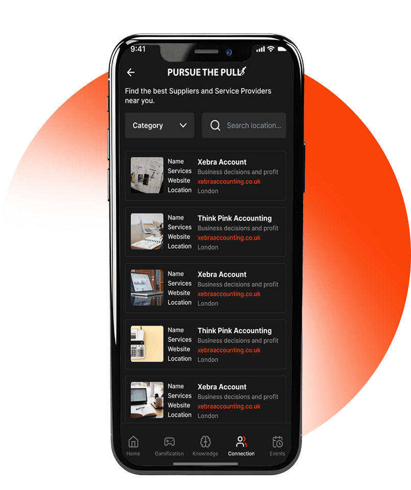 Discover a network of suppliers and service providers, including investors, copywriters, mentors, marketing experts, financial advisors, and accountants, to help you accelerate your growth.